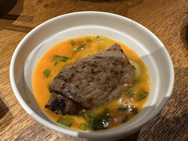 急な会社の後輩との親睦会にふと思い出し駄目モトで予約電話を入れてみるとラッキーなことに6人OKとのことで伺いました。場所は地下鉄の有楽町線、大江戸線から共に1分のところにあります。こちらは飛び切りの飛騨牛のA5をリーズナブルに頂けるオーナーの拘りが詰まった