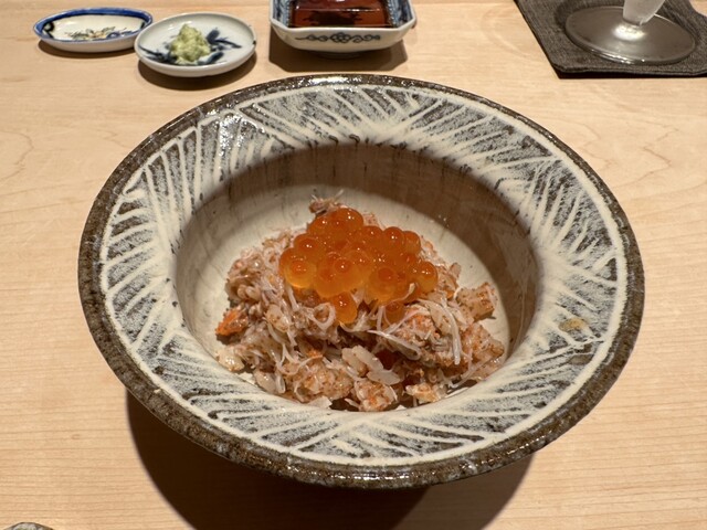 この日も定番の鰯巻き、珍味3種、茶碗蒸しや焼魚などの摘みはもちろんのこと、季節の香箱蟹と舎利とイクラの小丼などか絶妙な美味しさでお酒もたっぶり頂きました。