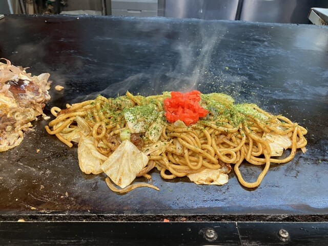 テーブル席に座ったらお好みも焼そばも皿で提供になるから気ぃつけや。
