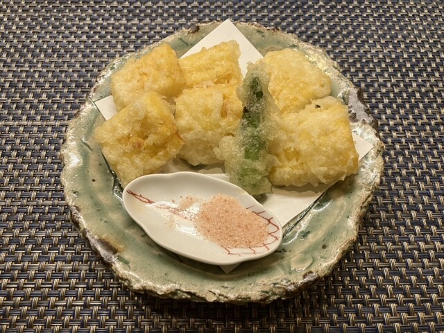 今週2回目の入店。今日は東京からフレンチの料理人の方が調理をされるとの事で、取引先の方にお誘い頂き、いつものコースとは違ったメニュー構成で頂きました。ワインにも日本酒にもよく合うお料理に舌鼓です。
