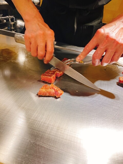 カウンターは目の前鉄板なのでシェフが焼く姿が見れて楽しいし、シェフも気さくな方でお話し楽しかった♡