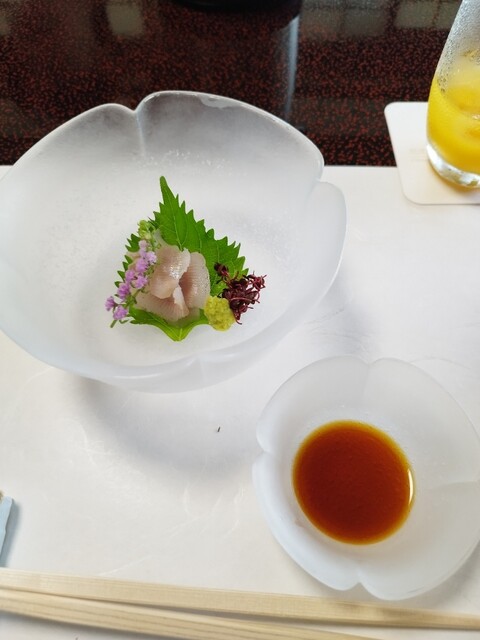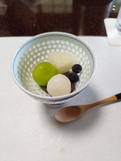 前菜は、オクラと山芋、合鴨ロース玉ねぎ南蛮乗せ、枝豆、海老真薯