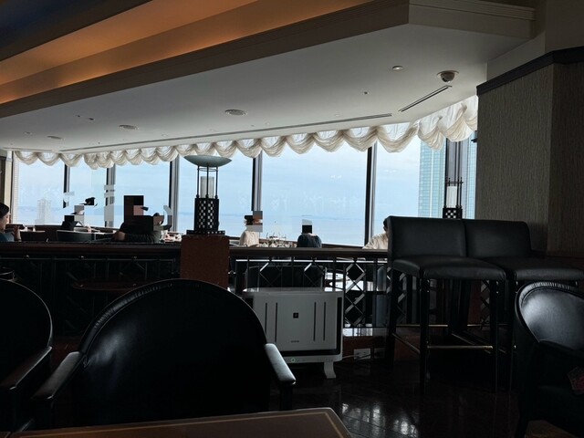 休日のランチタイム開店時間の予約で伺いました。最上階到着すると何組か開店待ちしていらっしゃいました。お席は全ての席で外が見える感じになっています。前菜からお魚もお肉もとても美味しくてボリュームたっぷりでした。お食事も何種類かから選べどれも美味しかったです。デザートはお隣のラウンジでいただきます。接客はホテルクオリティですし贅沢な気分を味わえました。季節のものを使ったお料理なので違う季節にも伺ってみたいと思いました。