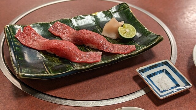 そして肉寿司も別途で頼んだ神戸牛の肉寿司と食べ比べという貴重な体験が出来ました!ウニが乗ってる姫路和牛肉寿司も豪華でしたが、お肉だけで勝負している神戸牛肉寿司も、とても美味でした!