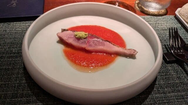 神経締めされ最高に拘りを持ったイナダや炭で焼いてからローストしたクエ等のお魚は、私が語るまでもなく最高で、鮮度は勿論のことミディアムレアな美味しさと素材を活かしたソースによるケミストリーにただただ感服でした。