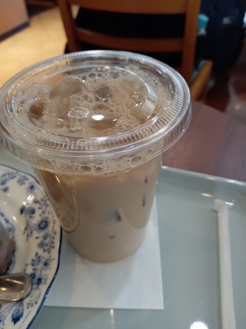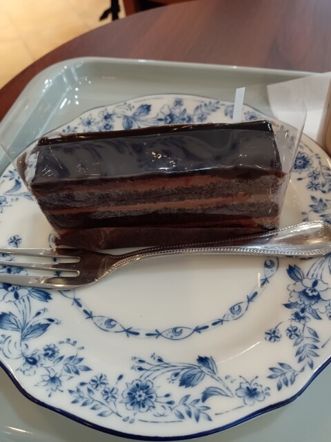 朝から自分へのご褒美にダブルチョコレートケーキとアイスカフェオレのセット。950円です。