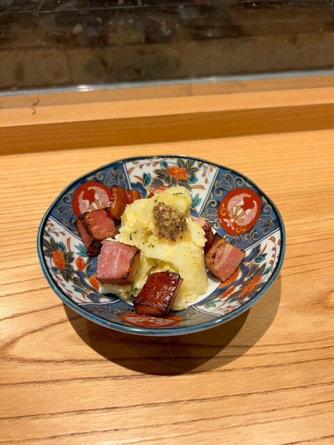 肉厚で香ばしいベーコンと、ねっとりとしたじゃがいもが絶妙にマッチ。粒マスタードの酸味が心地よいアクセント。大ぶりにカットされたじゃがいもも舌触りよく、卵との相性抜群。