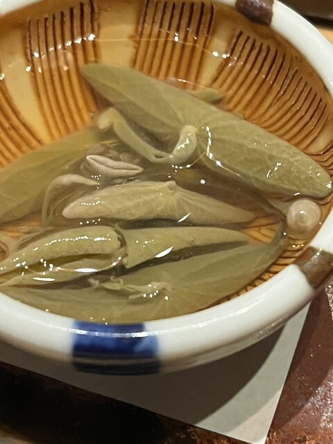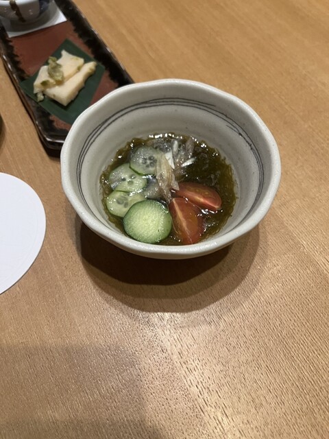 一番人気[キンキ姿煮コース] 名物料理をいただきました。目にも嬉しいコース!人気【キンキ姿煮コース】は、季節の前菜二種盛り はじゅんさいとタケノコ。いずれも春を感じさせてくれませ。季節の小鉢 は、細もずく。もずくの上には彩りが美しく、茗荷が香る。地魚の刺身六種盛り に、熊本直送 馬刺しとタテガミ盛合せ 。甘い醤油につけ口に運ぶととけていく。宮崎産 日向鶏もも肉炙り焼き は、ふんだんに火をつかい焼き上げられ香ばしい。キンキの姿煮つけ(一尾) は汁まで飲み干してしまいたくなるほど上品な味わい。さらに季節の天ぷらにホタルイカにアスパラはもう絶品!〆に燻りがっこ ・地鶏ラーメン と紫芋アイス。紫芋アイスには、紫芋の焼酎が付き、、、もう大人のデザート。こちらのお店にしかないであろう焼酎の温泉水割りはカラダに優しいフルーティな味わい。