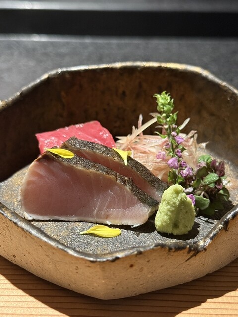 「お造り」は北海道産天然本鮪と三重産サワラ。