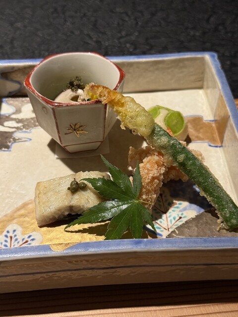 「花ズッキーニ白扇揚げ」はサクッとした衣と野菜のジューシーさのバランスが絶妙。