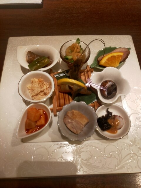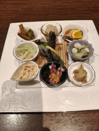 ツブガイやノドグロなどの日本産の和風の海鮮素材や和牛を使い、丁寧に調理されたお料理の数々。