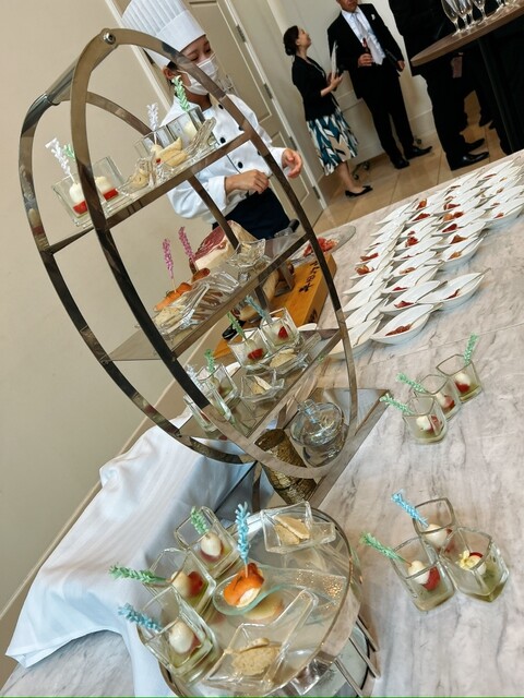 披露宴が始まる前にもアフターパーティー的な感じ?でかわいいおつまみが並べられていて楽しかったです。