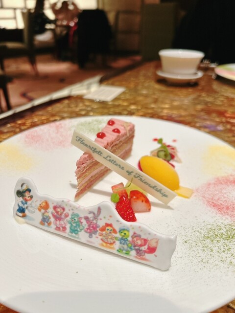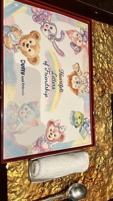 ダッフィーのチーズクラッカーやダッフィーのせいろ、ミッキーとダッフィーフレンズのイラスト入りのデザート、とダッフィー尽くし