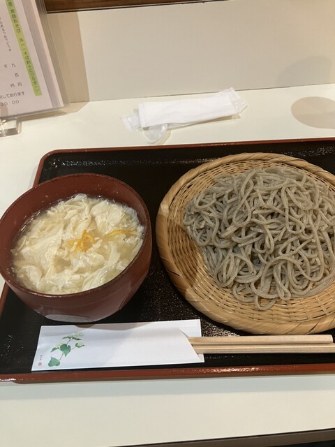 今回はひやし湯葉そばと梅納豆おろしそばを注文。