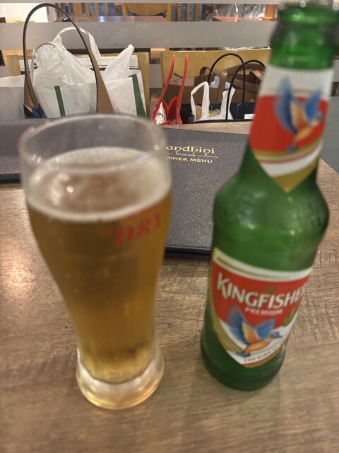 パリッと焼き上げられた生地の香ばしさと、中のスパイスポテトがたまらない。そして、お供にはもちろんインドの定番ビール「キングフィッシャー」をいただきました✨
