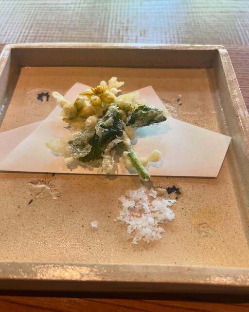 まずは朝採れウドと雉を挟んだ蕗の薹の揚げ物