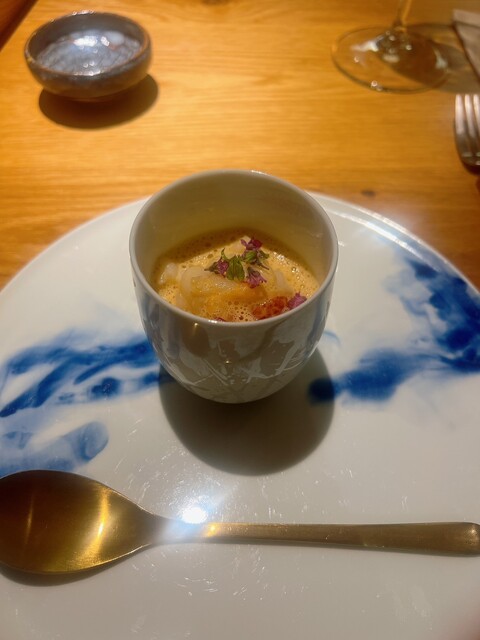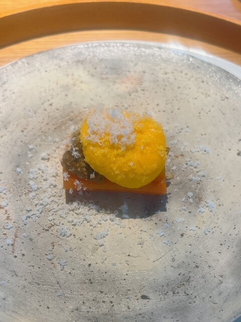 人参と唐津産雲丹、削られたマカダミアナッツが心憎く香ります