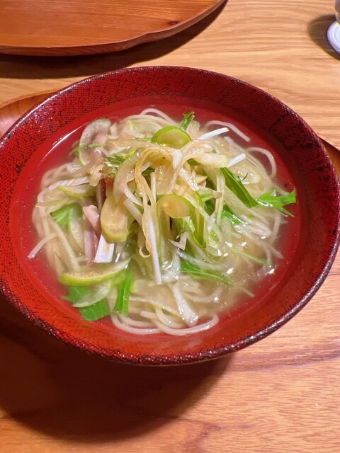 スープはフカヒレと唐津の新玉と新ワカメ