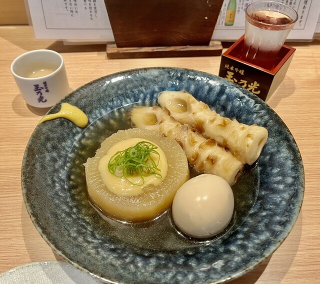 千円で日替わり日本酒とお造り、おでんがいただけます(^ ^)