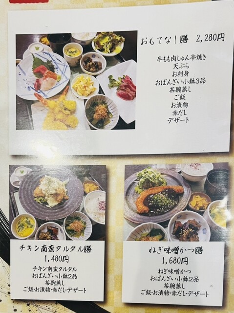 メインが選べてお刺身、茶碗蒸しなど全部で9品もある定食です。