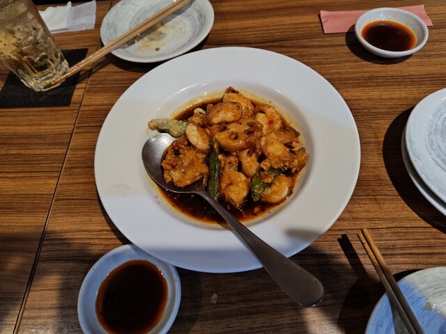 前菜、よだれ鶏(追い麺)、麻婆豆腐、担々麺、エビマヨ、炒飯、全ての料理がなに食っても美味い。