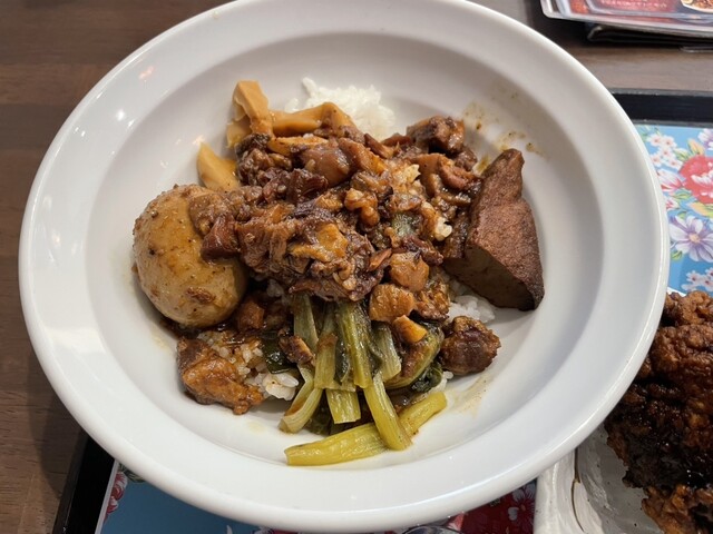 ご飯にバラ肉を甘辛く煮込んだルーローに煮卵チンゲン菜が添えられたシンプルな料理ですが、これが絶品なんです