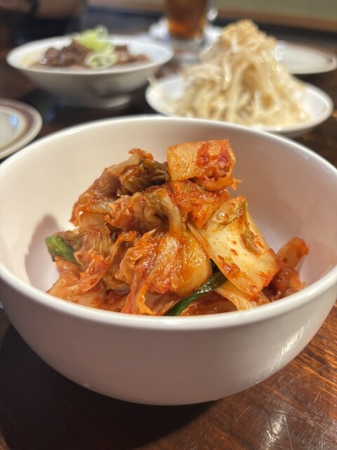 箸休めのナムルとキムチや、煮込みも美味しく、箸休めどころかそれでご飯がいただけます。