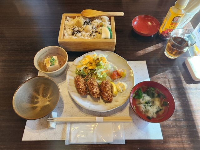自在庵 Aランチ 栗おこわ、カキフライサラダ添え2,420円