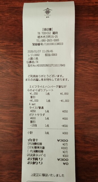 会計は1,800 円から食べログポイント1,000円とサービスクーポン500円を引いて、300円をd払いで払いとってもお得なランチでした。