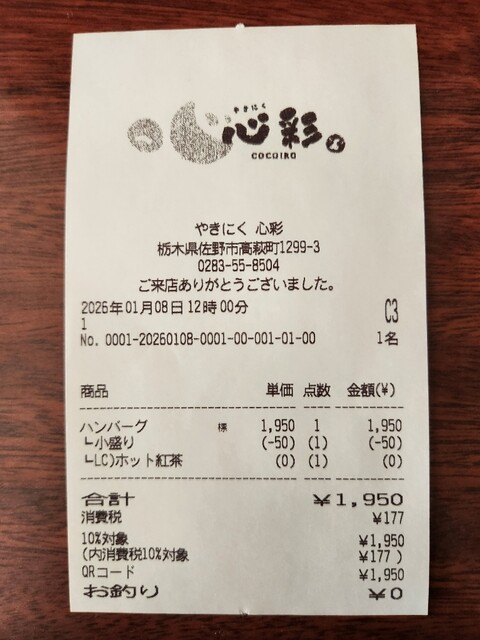 今日は佐野市高萩町のやきにく心彩(ここいろ)に行って来ました。