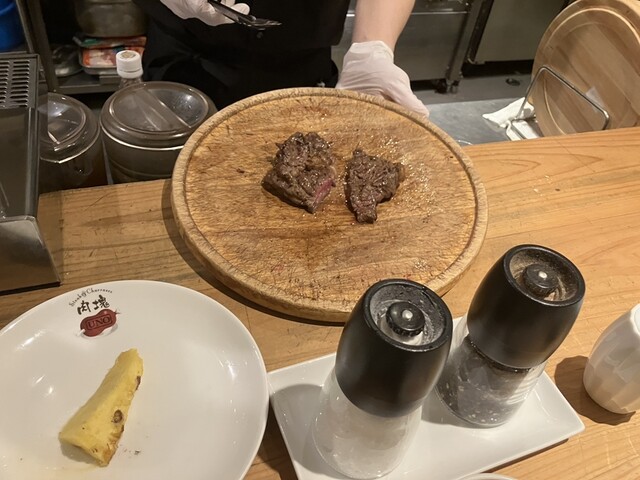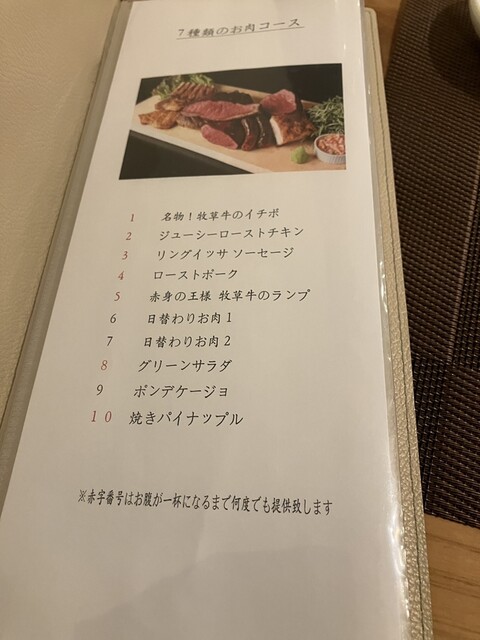 金曜日早めの時間に電話で当日予約。2人だったのでカウンター席。カウンター席だとグリルしているところも見られるし、直接切り落としてお皿に載せていただけるので、アトラクションとしても楽しめるお店です。この日は特別に牛ハツをサービスして頂きました焼きパイナップルは、こちらからタイミングを見て頼むスタイル。サラダは最初に提供され、お皿が空になってくると追加してくれるシステム。お通しとして、大根ときゅうりと人参のピクルスがあって、お肉の合間に丁度良い7種類のコースでしたが、全部食べると1周で300gとの事。私は1周後、お肉お代りしたので、かなり食べた感じです。厚めのシュラスコのように提供してくれるので、いつ追加しても焼きたて。