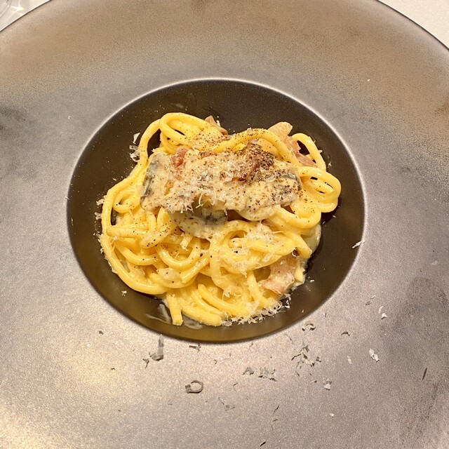 【パスタ】豚頬肉のグアンチャーレ入りカルボナーラ