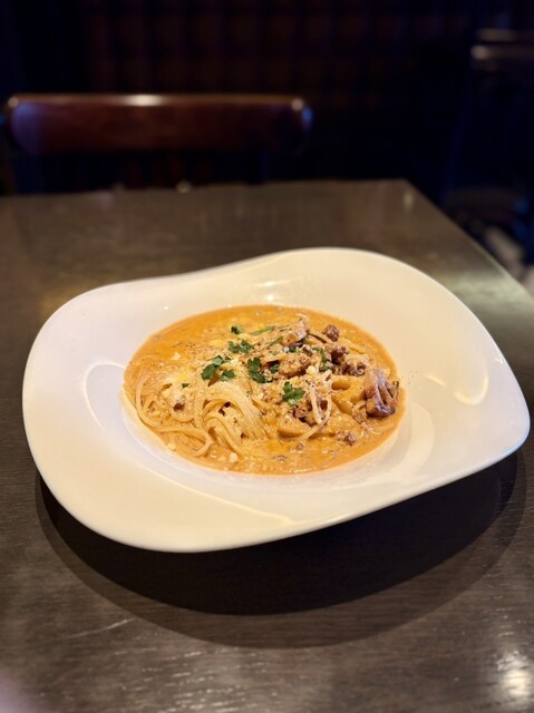 パスタはクリームソース仕立てになってるので濃厚。肉肉しい和牛ミンチと蓮根ともマッチして熱々で冬感あってめちゃくちゃ美味しかったです。