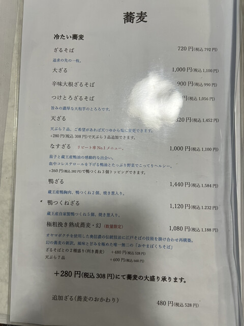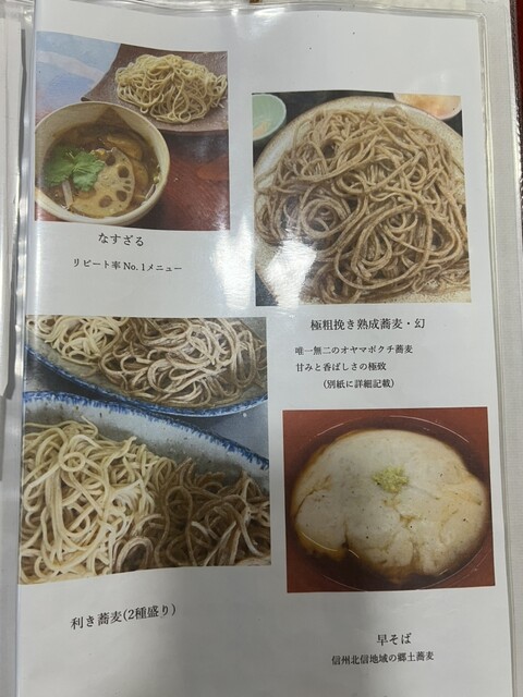 メニューを開くと、蕎麦そのものにも2種類のこだわりがあるとのこと。