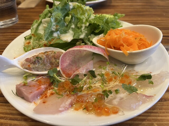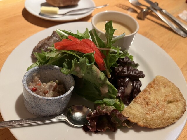 ランチコースは、メインと飲み物(コーヒーor紅茶)以外はお任せです。この日のメニューは以下の通りでし...