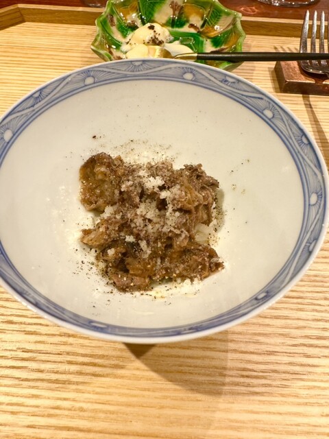 ・炭火で焼いた白子 初めのまぐろ出汁 パスタ