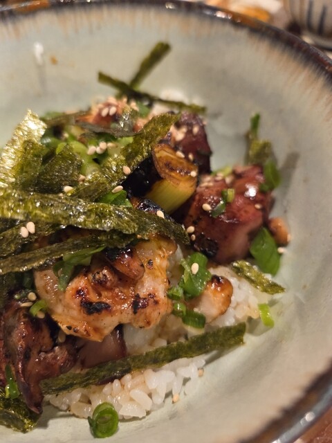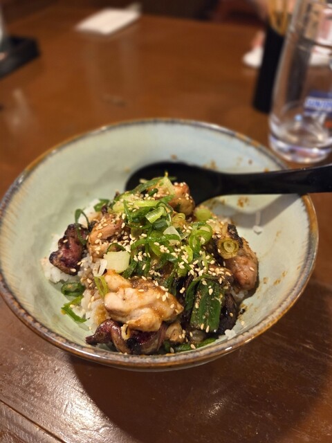 〆は焼き鳥丼カスタム、ネギマと焼き肝で作ってもらいました。