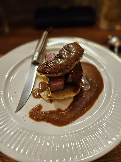 神戸牛にフォアグラ乗せちゃいまして当たり前に絶品、追加というかお目当てのビフカツも⋯