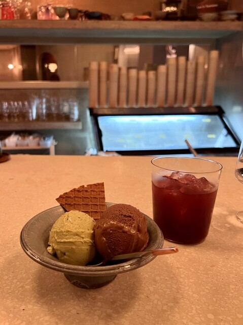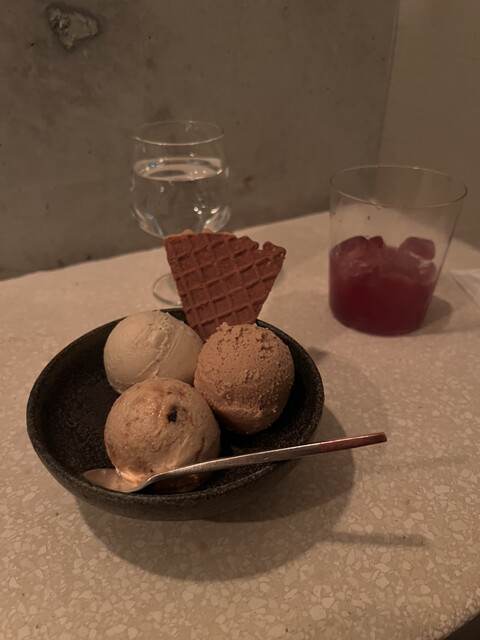 アイスは迷いに迷って、柿、ゴルゴンゾーラ、甘酒エスプレッソと3種類欲張ってみました。