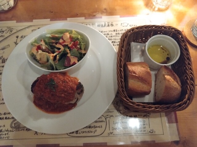 ハーブのハンバーグは爽やかなほんのり苦味とトマトソースの酸味がよく合います。