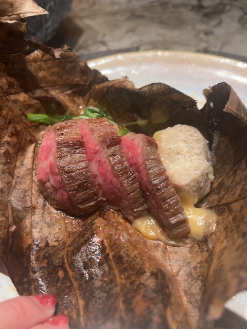 朴葉の香りが肉の脂と絶妙にマッチし、噛むほどに肉汁がジュワッと広がります!