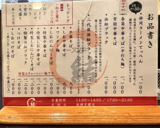 前回訪問後、友人や職場の方にこの店を勧め後日感想を伺うと皆口を揃えて「近隣(浜松)でいちばん美味い」と仰ったので間違いないと思います。