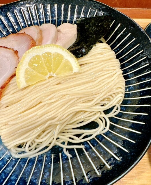 麺は中細のストレート麺。汁は角切りチャーシューと刻みネギが入った淡麗醤油スープ。具材はチャーシュー3種と海苔、檸檬。今回は初見だったため、お店の食べ方通りに、塩→スープ→檸檬→昆布水のスープ割りの順に実食。麺はツルツルで昆布水に浸っているためそのままでも旨い。スープはキレやコクがあり麺との相性よく、昆布水のスープ割りは贅沢感が増し、安定の完飲。チャーシューもラーメンの時とは異なりスープに浸っていないため素材本来の味が感じられ…全てにおいてクオリティの高い1杯でした。