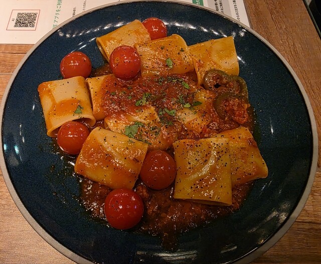 パッケリは、生パスタのようにモチモチして食感がよく、アラビアータの味が染み込んでおり、最高でした。