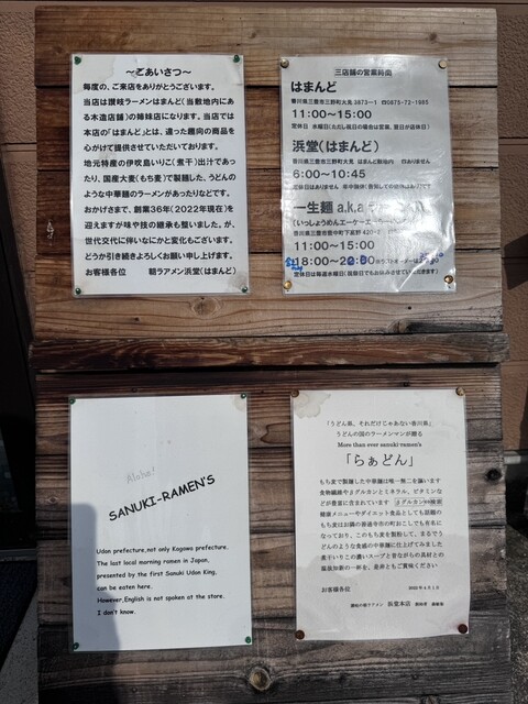 文句無く美味いはまんど本店。6:00~10:45にしか提供されない朝ラーメンを初めて食す。朝ラーメンは同じ敷地にある旧店舗のカウンターのみのコンパクトな店内でいただく。8時までしか供されない煮干そばが食べたくお願いしたら、ねだんは700円の中華そばでもスープは煮干そばのスープで作ってくれた!ありがとう!麺肌が滑らかな中太縮れの平打ち麺がスープをよく纏い啜る箸が止まらない。麺もスープもチャーシューも全て美味しく、流石讃岐ナンバーワンと言われるだけたる。勢いで追加注文さたチャーシュー丼も満足。讃岐の朝活にはうってつけのはまんも朝ラーメンでした。