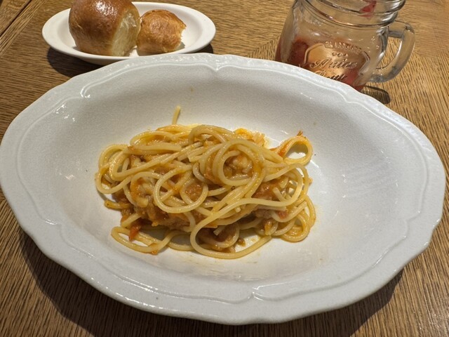 スモークされたトマトソースのパスタが美味しい♪