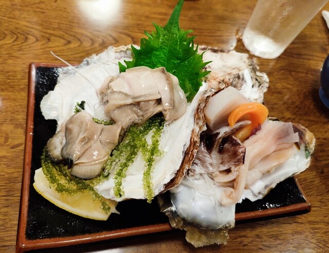 メニューには岩牡蠣とありますが、トリ貝、ホタテ、ホッキ貝と盛合せです。