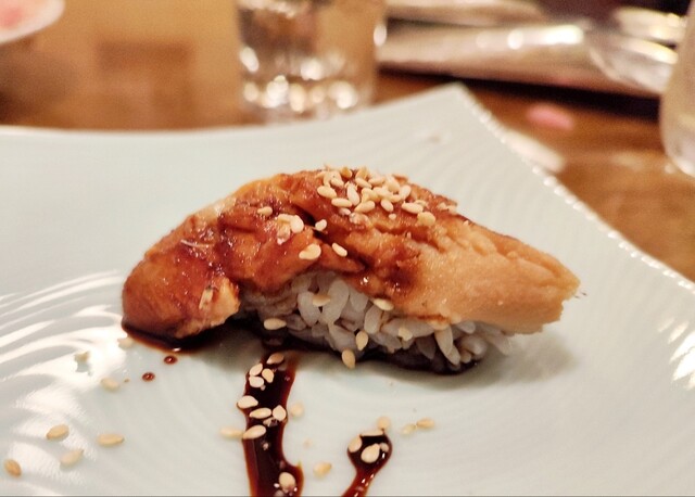 スモーキーな中にほのかに柑橘香るヅケ!こればっか10貫くらい食べたい。