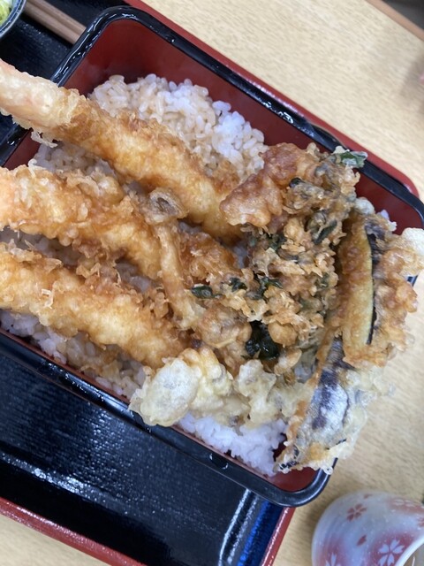 女房の天重を少し頂きましたが、こちらもサクサクしていて美味い。