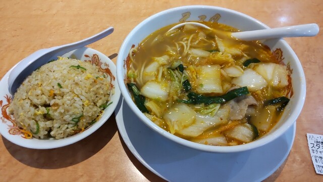 自身の好みで全国5位内に入ります。「彩華ラーメン」も美味しいですがそれぞれ野菜の使い方が違うので、私はこちらがより好みです。野菜の旨み強く程よい辛さで、見た目とやや違う優しいスープです。実際、子供連れのご家族三代で来る方も毎回のように見かけます(本店内も席間含め広々です)。スープを多めにいただくと見えてくる丼底のコメントも「天下一品」と同じく、思わず次の訪問を約束してしまいます。年数回しか行けませんがその間は、天スタ直のお取り寄せか「ザ・ガーデン」等でも時折販売してますので、それらでしのいでます。店舗よりはやや塩味強めですが、価格設定低めで充分満足できますよ。